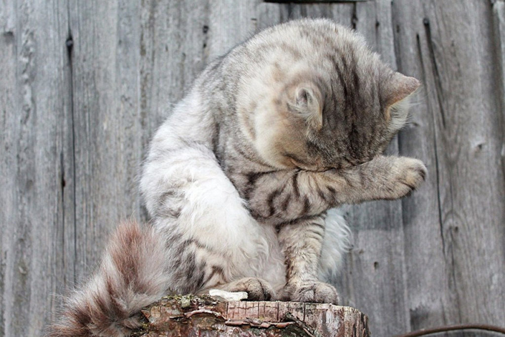 Замечено, что чем активнее образ жизни кошки, тем больше времени она уделяет своей гигиене. Логично скажете вы, ведь чем больше гуляет питомица, тем сильнее пачкается ее шерсть. В этом утверждении лишь часть правды. Замечено, что кошки, имеющие доступ на улицу вылизываются намного усерднее и причина такого поведения в устранении запаха. Зацепки на языке устраняют пыль и естественный жировой налет, который является источником естественного запаха. Дело в том, что для нормального функционирования кожных покровов и здоровья шерсти, жировая смазка должна регулярно обновляться.
