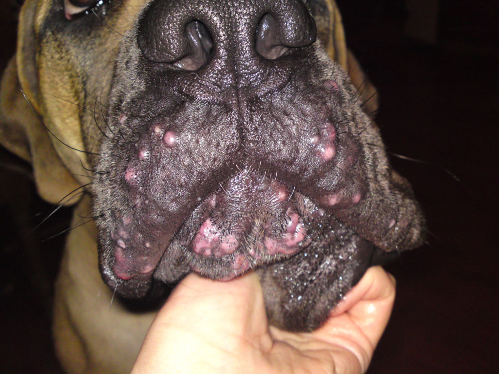 - Пса беспокоит зуд, с которым он пытается справиться постоянным чесанием.