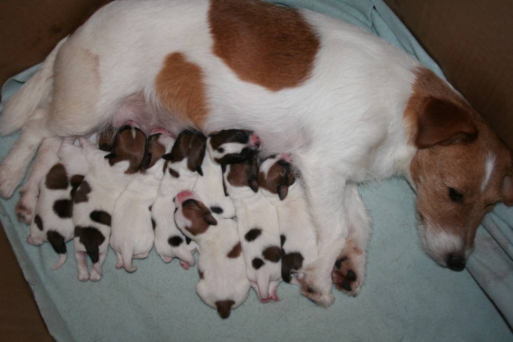 Если у самки джек-рассел-терьера пропало молоко, или она по каким-то причинам не может выкармливать щенят, заняться этим придется хозяину. Специальную смесь для выкармливания щенков продают в зоомагазинах. Изначально кормить малышей придется каждые пару часов. Постепенно промежуток между кормежками увеличивают.