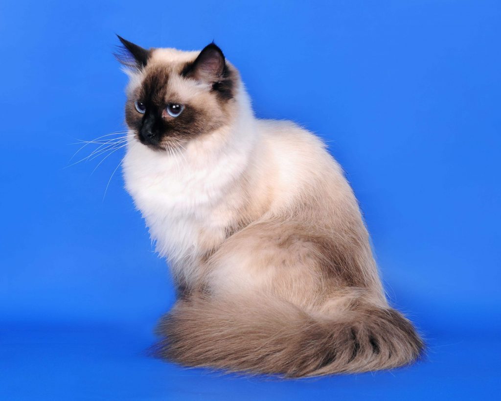 Это длинношерстные массивные кошки (от среднего до крупного размера) с пойнтовым окрасом и яркими голубыми глазами. Взрослые коты, набирающие по 8–10 кг, внушительнее кошек, весящих, как правило, не больше 6 кг. Считается подвидом сибирской кошки, но отличается от нее округлым профилем, широкой расстановкой ушей, длинными остевыми волосами, обильным подшерстком и более мягкой шерстью.
