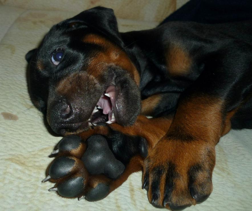 Доберманы – псы с королевской осанкой, которым сложно придумать прикольную кличку, которая бы не диссонировала с его внешним обликом и характером. Милые щенки с гладкой блестящей шерстью, большими лапами и умными глазками вызывают умиление и желание назвать их смешно – Латекс, Чебурек (неуклюжего щенка), Тюнинг, Кэткиллер, Гриффон, Пуля (резвого и быстрого щенка), Капут, Гугл (любопытного малыша).