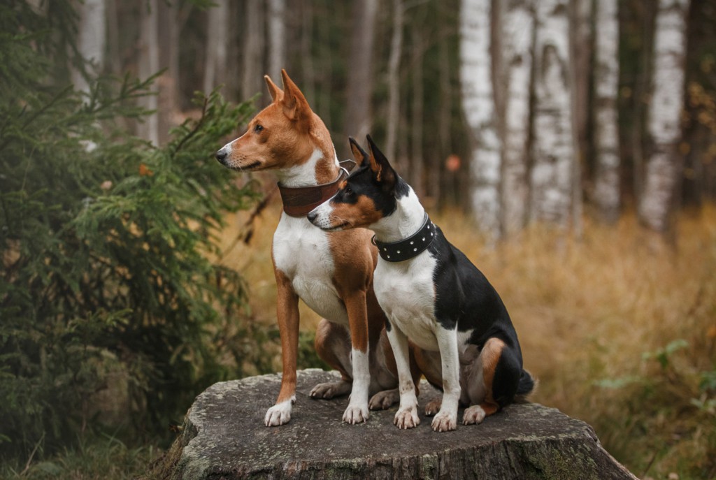 Басенджи – древняя порода собак, зародившаяся более 5 тыс. лет назад в Южной Африке. Это редкие собаки, отличительной особенностью которых является отсутствие лая. Нельзя сказать, что у басенжди нет голоса – во время эмоциональных переживаний они издают звуки, похожие на смесь завывания и фырканья. Тихий голос и чистоплотность позволяют держать пса в квартире. Представители этой породы имеют небольшие габариты – рост около 40 см, вес около 10 кг. Возможные окрасы: