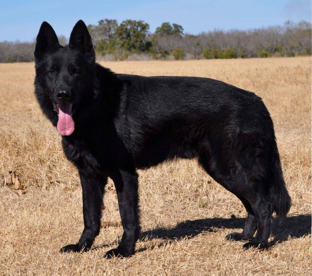 Черные «немцы» более крупные, чем прочие представители породы, у них прямая спина (у прочих овчарок она выпуклая), шерсть длинная, шелковистая, затылок и грудь украшает роскошный воротник.