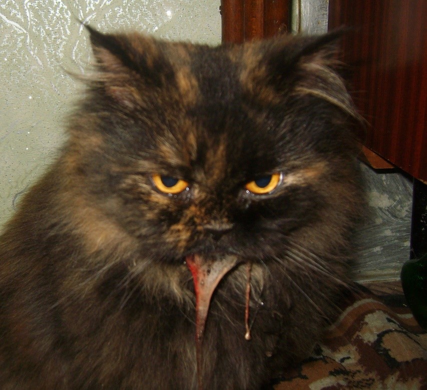 - Токсины поступают через ЖКТ. На первом месте, пожалуй, поступление токсинов через пищеварительный тракт. Например, пища у животного постоянно недоброкачественная (с плесенью или подкисшая). Кот мог съесть и комнатное растение (уж любят они листики и стебельки погрызть), а оно для него ядовито. Мог поймать и мышку, которая была кем-то отравлена крысиным ядом (мышьяком или другими зооцидами). А уж роли самолечения и вовсе стоит отвести отдельную тему. Чем только не пичкают своих питомцев «заботливые» владельцы. То человеческими препаратами, то дозировку превышают (кто-то из-за незнания, кто-то в надежде, что так выздоровление наступит быстрее), то и вовсе запрещенные для котов лекарства дает.