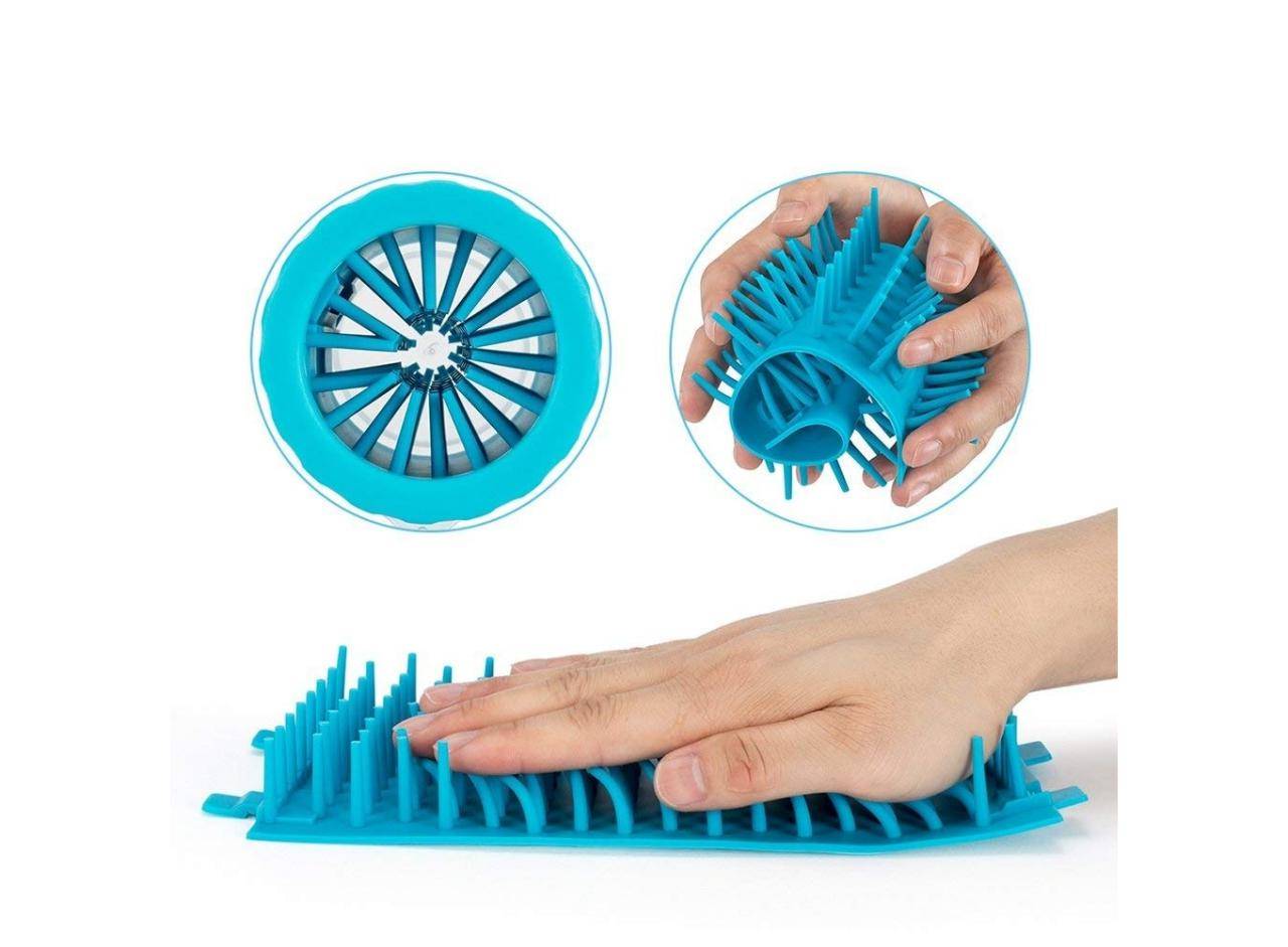 - при помощи лапомойки легко обработать все участки, даже между подушечками на лапах и волоски у длинношерстных четвероногих питомцев;