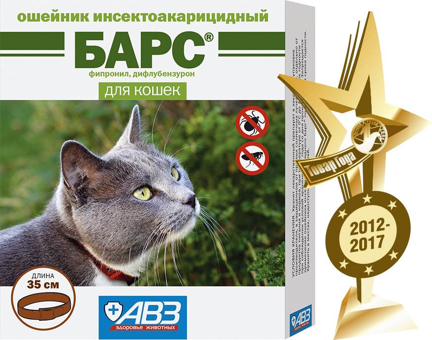 Третью позицию занимает ошейник с диазиноном и эфирным маслом цитронелла. Данные компоненты губительны для комаров, вшей, блох, власоедов, иксодовых клещей. Выделяясь с поверхности ошейника, они накапливаются в эпидермисе, сальных железах и луковицах волос кошки. Ошейник можно применять для котят с двухмесячного возраста. Подходит беременным и кормящим самкам.