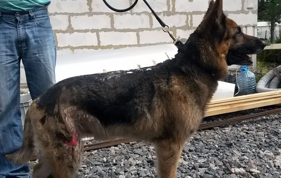 Овчарка Зет, 5 лет, ожоги 1,2 степени на левой тазовой конечности
