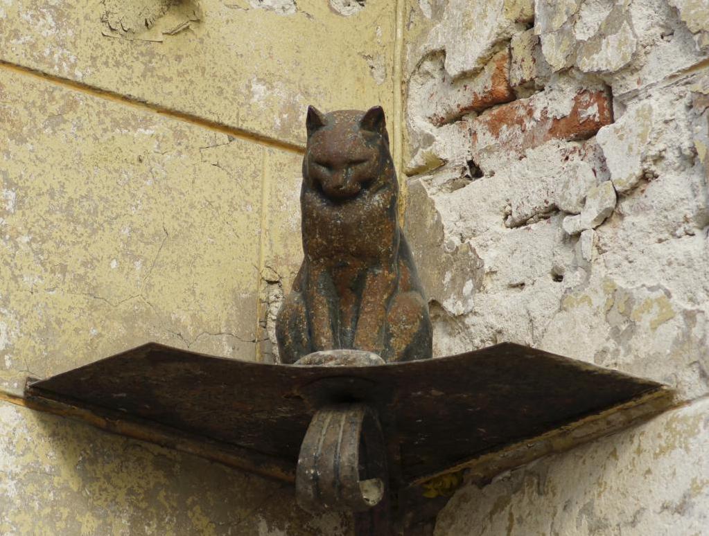 Это самый известный из памятников котам и кошкам. Скульптуры популярны среди туристов. Считается, что если человек подбросит монетку так, чтобы она упала на карниз рядом с Елисеем или Василисой, то его обязательно ждет удача.