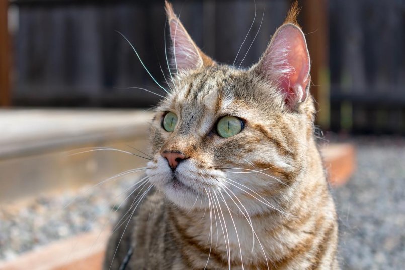 - Гордостью кисок-рысей являются симпатичные кисточки на ушах. Но вырастают они далеко не у всех представителей породы, а только у некоторых. А потому владельцам кошек с таким типично рысьим украшением, можно считать, что очень повезло.