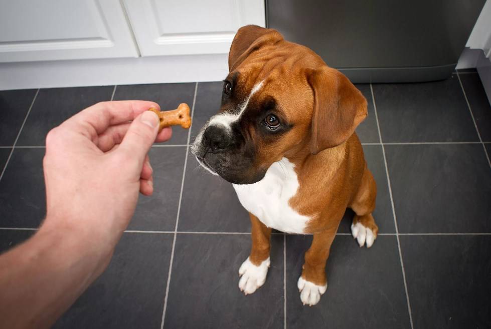 Поощрение щенка за хорошее поведение