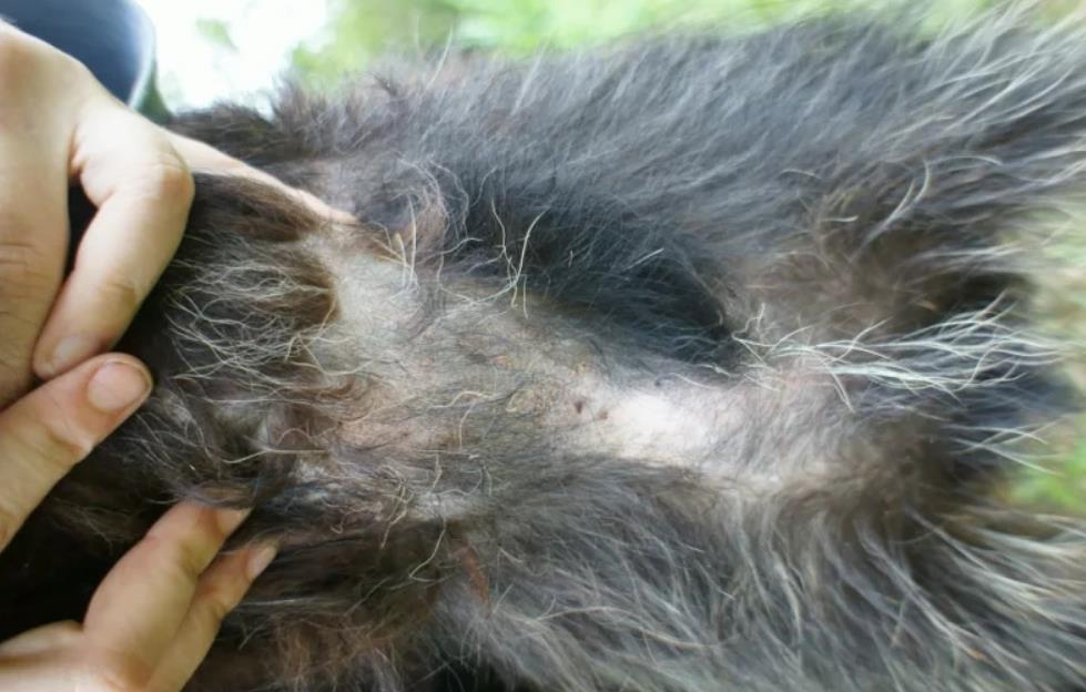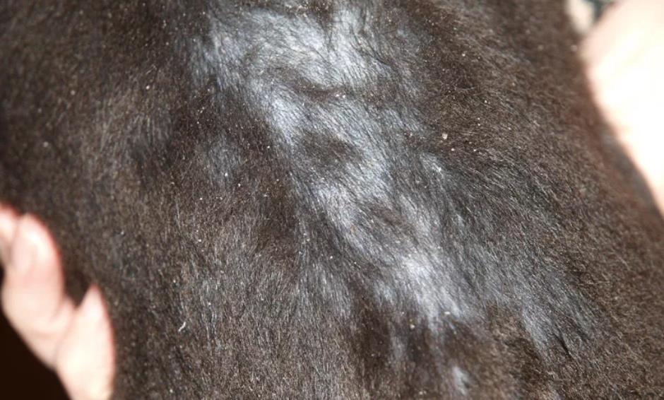 Неправильное функционирование сальных желез приводит к образованию лысых участков на спине.