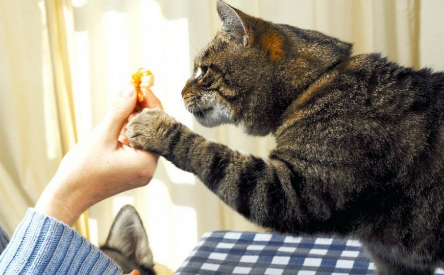 Лакомства — одно из самых замечательных средств установления дружеских отношений между кошкой и человеком. Если подкрепить положительное поведение чем-нибудь вкусным, кошка будет поступать так и впредь. Если лакомства будет давать ребёнок, у кошки сложится положительная ассоциация с ним.