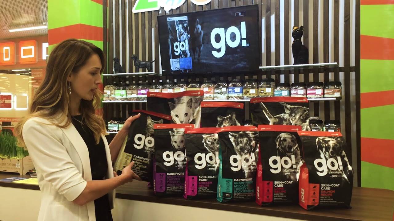 - широкая линейка кормов Гоу, включающая беззерновые рационы, консервы;