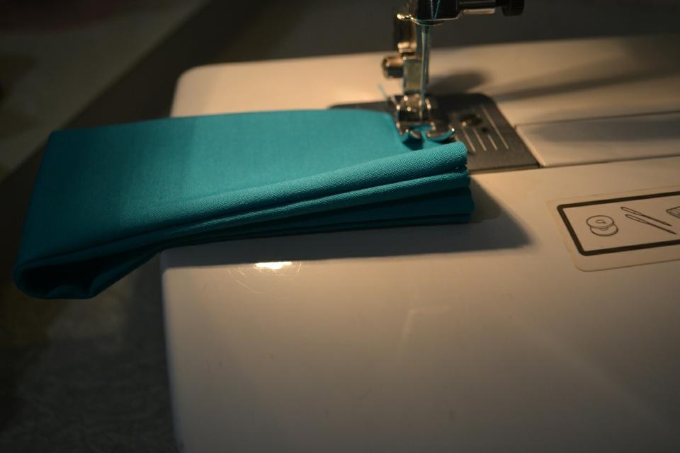 Шаг 3. Отрезок 25 см складывают пополам и сострачивают в кольцо. Далее, эту деталь складывают таким образом, чтобы строчка оказалась посредине.