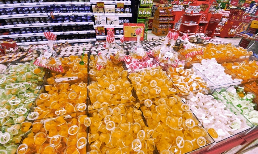 Сладких перекусов не считал – нереально. Сотни видов пастилы, орехов, сушеных фруктов и овощей, вафель, мункейков, ультрасладкого печенья и рисовых… изделий? С последними была самая большая интрига, потому что могла попасться и рассыпчатая сладость с кунжутной начинкой, и белые пластинки, на вкус и ощущение как мука.