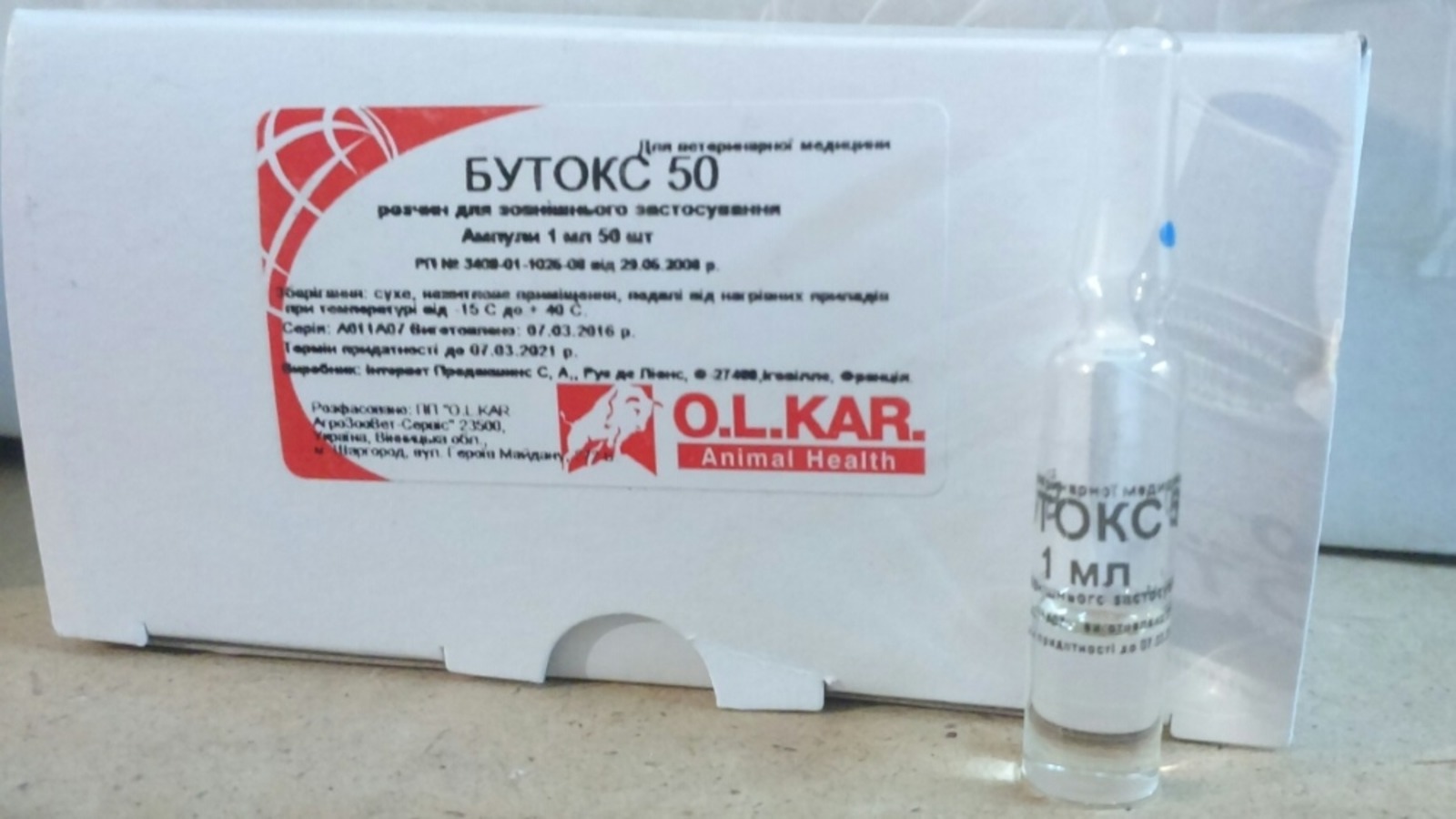 - Ампулы «Бутокс-50» (стоимость 5 ампул — 150 рублей) — уши орошаются раствором: 1 ампула растворяется в 1 литре воды;