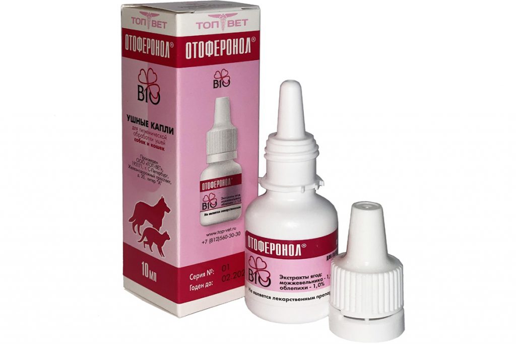 Ушные капли от паразитов для кошек и собак Отоферонол