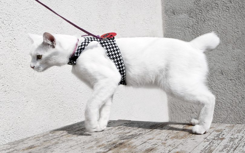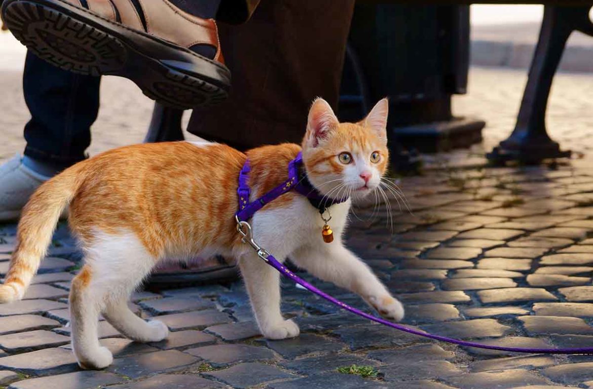 В городских условиях выгул кошки осуществляется строго на поводке. Прогулка с кошкой кардинально отличается от похода на улицу с собакой.