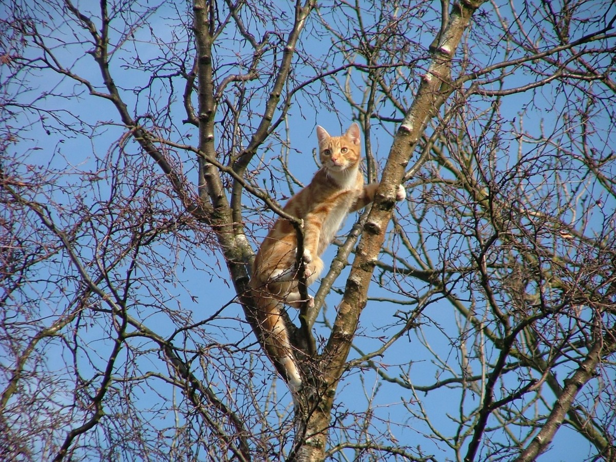- Участки с высокими деревьями на них тоже должны находиться в списке тех мест, где не нужно выгуливать котов. Испуганный питомец может вырваться и забраться высоко-высоко. И никакие лакомства, игрушечки, ласковые слова не стянут его оттуда.