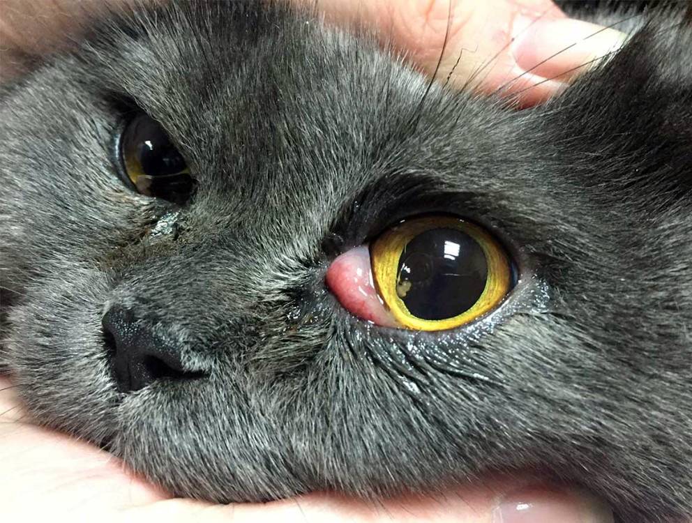 Третье веко становится видимым, когда у кошки происходит воспалительный процесс или другие патологии