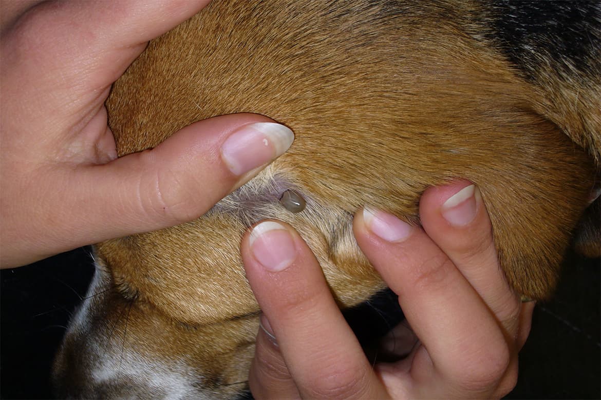 Проблема в том, что собака не ощущает самого укуса, поскольку паразит выделяет специальный секрет, снижающий чувствительность тканей. При отсутствии аллергии клеща заметить очень трудно.