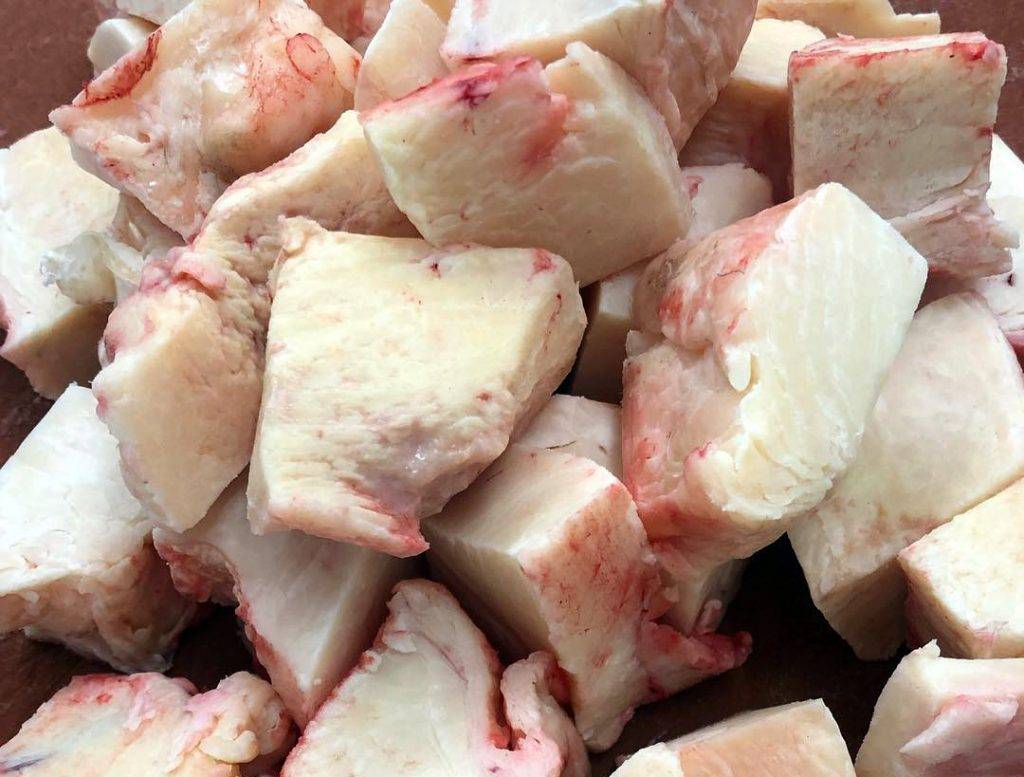 Куски должны быть таких размеров, чтобы собака не заглатывала их сразу, а пережёвывала, тем самым естественным образом удаляя зубной налёт.