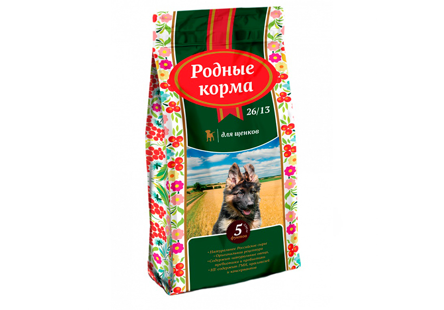Позиционируется данный корм как премиум класс. Под брендом «Родные корма» также производятся корма для кошек, птиц, грызунов, сумки и переноски для кошек, собак.
