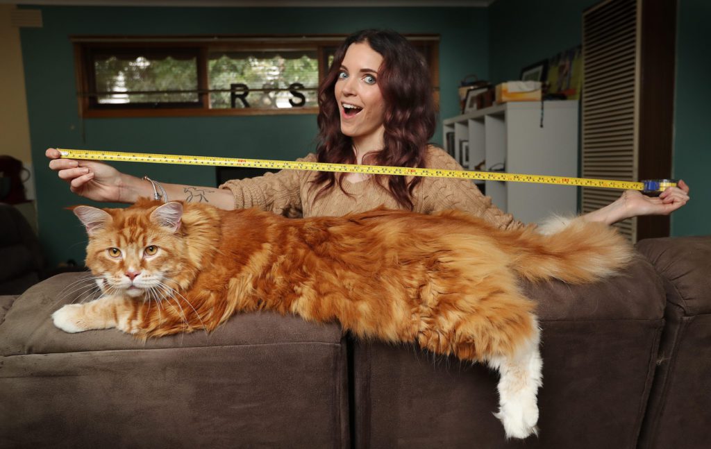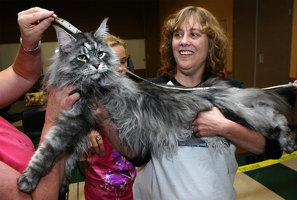 До 2013 года звание самого длинного кота принадлежало мейн-куну по кличке Стьюи, появившемуся на свет в 2005 году и проживавшему в семье Хендриксонов в американском городе Рино, штат Невада. Длина его туловища от кончика носа до кончика хвоста составляла рекордные 123,2 см. К сожалению, пушистый великан Стьюи ушел из жизни в возрасте 8 лет после долгой борьбы с раком. Супруги Хендриксоны отзывались о нем как об удивительно нежном и преданном друге семьи.
