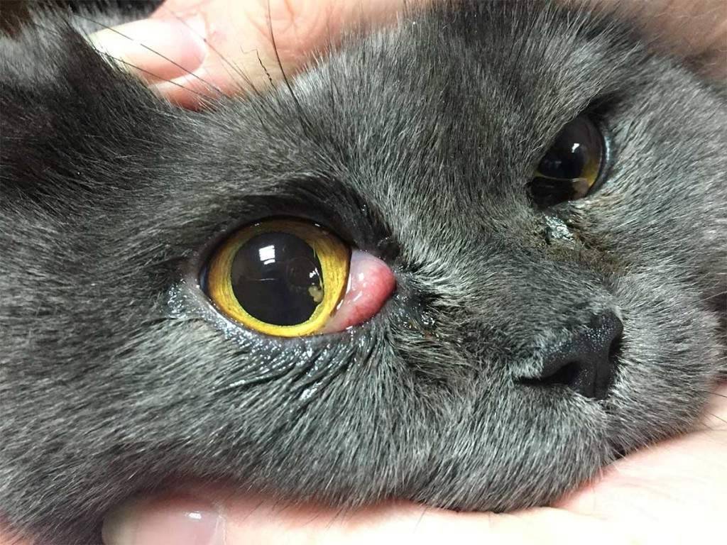 По мере роста котенка, порой происходит излом мигательной перепонки по причине неправильного развития хряща. Как результат — может воспалиться и выпасть третье веко. Исправить ситуацию без антибактериальной терапии и последующей хирургической операции невозможно.