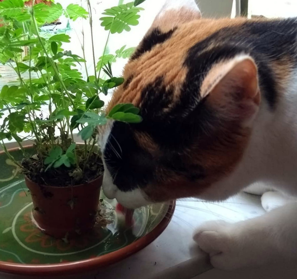 - Если в доме есть специальная лечебная трава для кошек, которую заводчики часто выращивают в горшках, то можно сорвать немного и положить рядом с питомцем. При желании животное может полечиться таким безопасным средством.