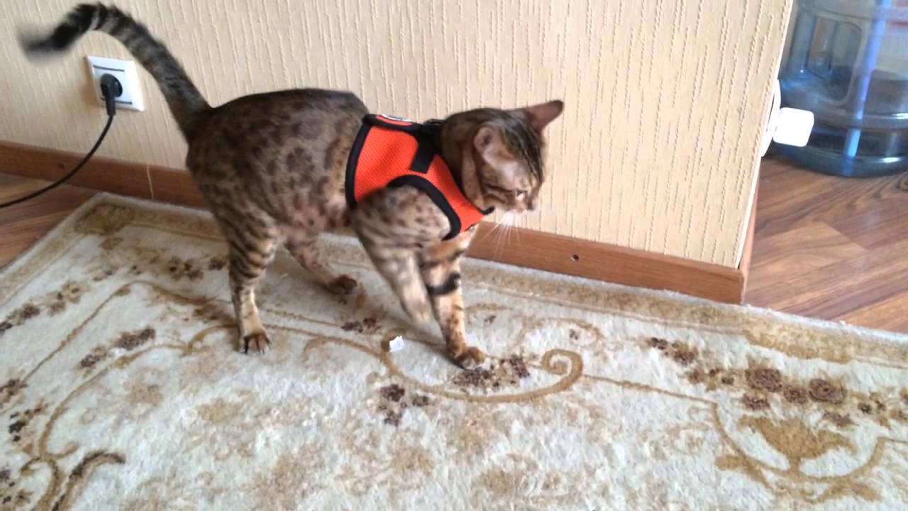 В следующем видео вы можете ознакомиться с тем, как правильно одеть и приучить котика к шлейке.