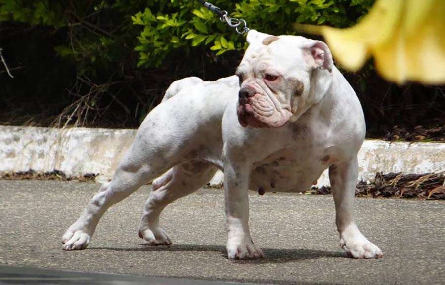Американский бульдог имеет прямое, чуть выпуклое в пояснице туловище. Может присутствовать высокозадость. Его корпус, грудная клетка, плечи, бедра мощные, хорошо развиты, лапы средней длины, прямые, широко поставлены. Хвост длинный, узкий к кончику, широкий у основания, не закручивается. У представителей этой породы шерсть короткая, блестящая, высота ее – до 15 мм.