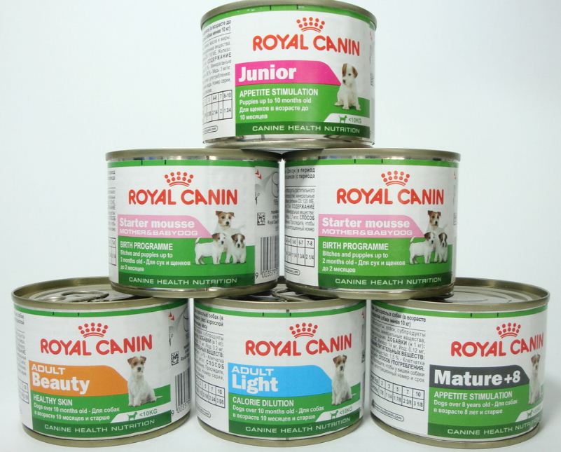 Влажные корма для малышей лабрадора могут использоваться как постоянный тип питания или лакомство. Они упаковываются в большие металлические банки или паучи, рассчитанные на 1 прием. Консистенция разнится от муссов и однородных смесей до кусочков в желе. Популярные марки качественных кормов: