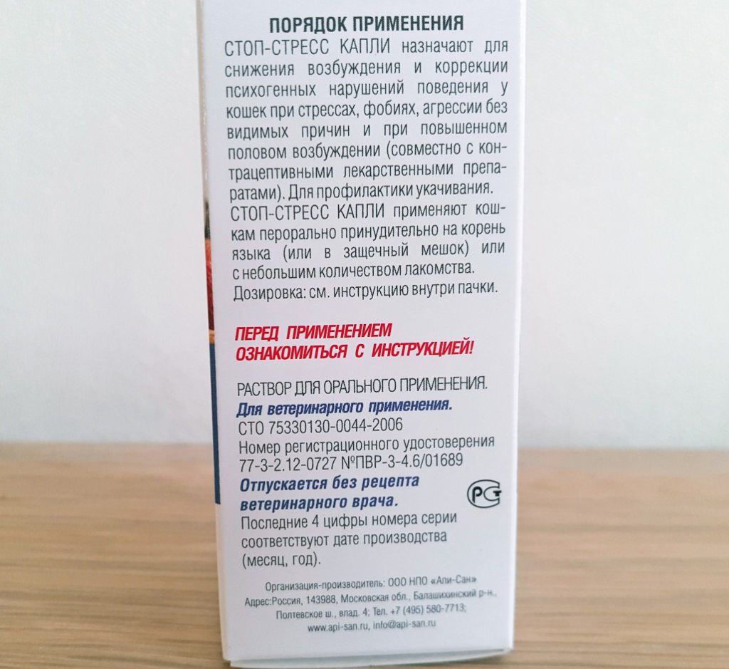 Специалисты советуют давать препарат животному заранее. Например, если запланирована выставка или поездка, желательно капать средство коту за три-пять дней до этого и после еще пару суток. Все это время питомец будет выглядеть сонным, может отказываться от еды. Повода для волнений нет – через какое-то время после отказа от препарата кошка станет прежней.