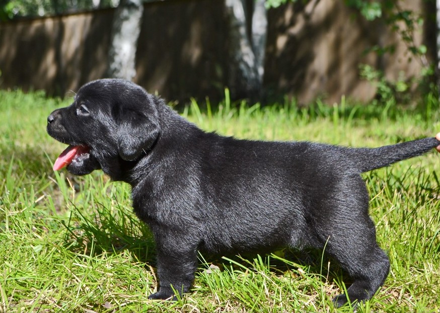 Прочные кости лап по своему строению прямые от локтя до земли. Угол наклона лопаток позволяет лабрадору делать широкие вальяжные шаги, что хорошо сказывается на скорости при беге.