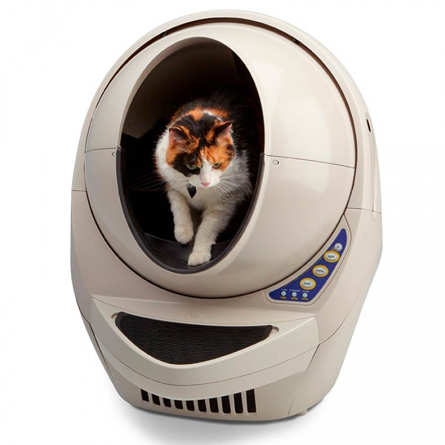- Cat Genie – один из самых дорогих автоматических туалетов. Он имеет вид унитаза круглой формы. В качестве наполнителя используются специальные гранулы. Модель работает от электропитания, а также требует соединения с канализацией и водопроводной системой. Механизм работы позволяет отдельно собирать жидкие и твердые отходы и смывать их в канализацию. После удаления мусора происходит очистка при помощи чистящих средств, поэтому распространение запахов полностью исключается. Удобство этой модели состоит в полной автоматизации процесса очистки, благодаря чему туалетом могут пользоваться одновременно несколько животных.