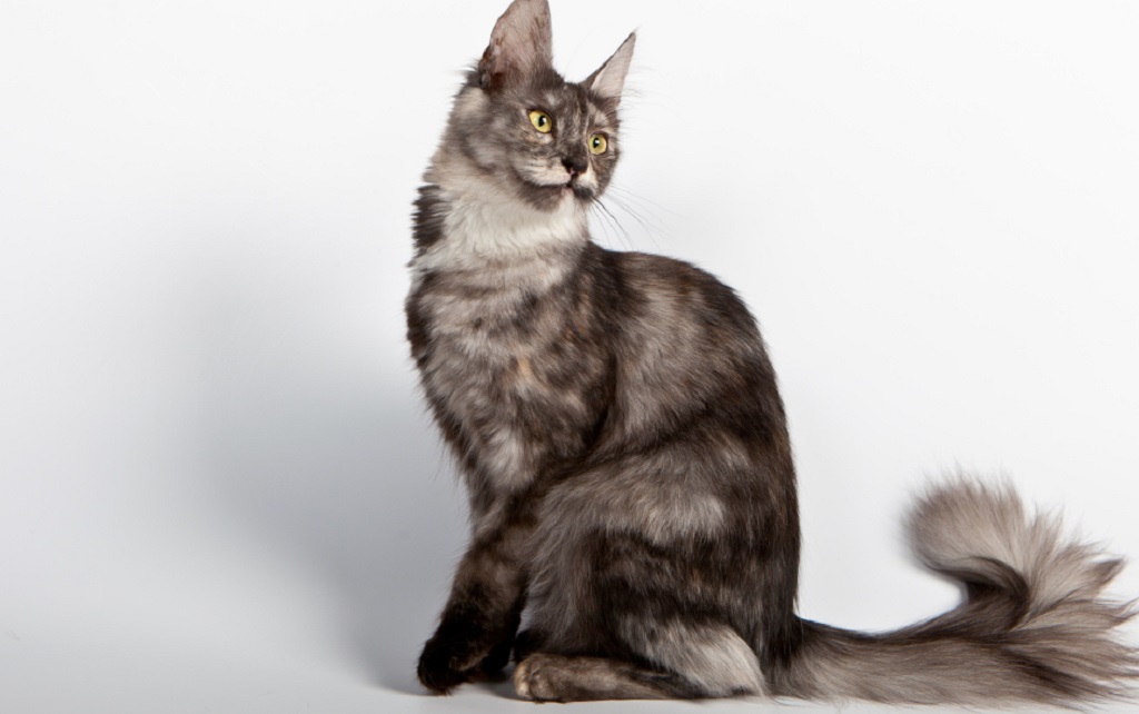 - Шерсть: длинная, отливает блеском, напоминающим шёлк; особенностью считается то, что шерсть на всём теле разной длины, но на хвосте она должна быть длиннее;