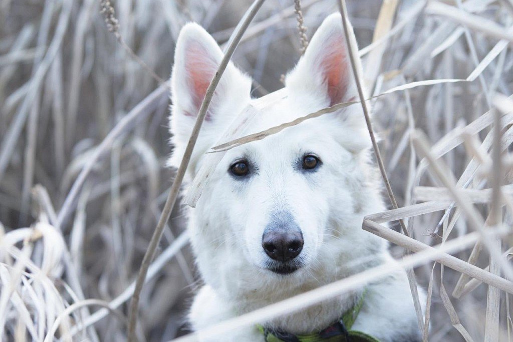 Морда белой швейцарской овчарки