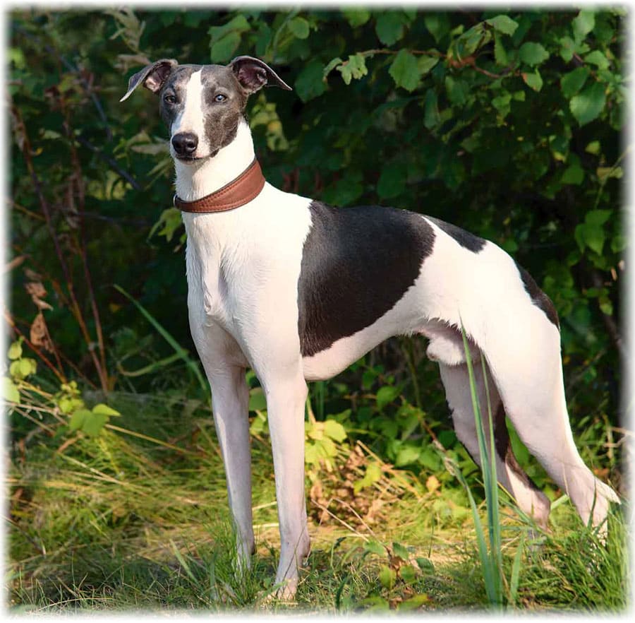Описание породы уиппетов схоже с грейхаундами, поэтому иногда их называют «уменьшенными грейхами». Однако характеристика строения некоторых частей тела имеет кардинальные отличия. Особенность уиппетов – грациозность, вызывающая восхищение у такой крупной собаки. Их тело изогнуто красивой дугой, стойка настолько отличная, что кажется животные рождены для участия в выставках.