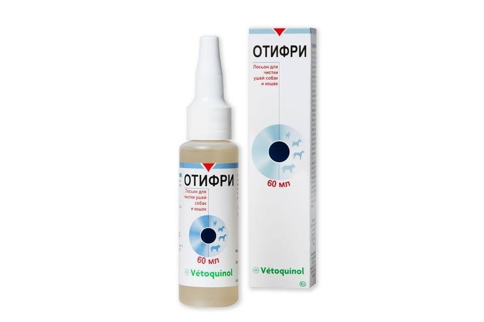 - «Отифри» благотворно воздействует на кожу и микрофлору слуховых проходов, очищает, обеззараживает, снимает воспаление и препятствует размножению болезнетворных микробов. Лосьон содержит касторовое масло (кремофор EL), настой и экстракт календулы. Уничтожая серу, он одновременно укрепляет кожу. Очень эффективен, если у собаки зуд в ушах.