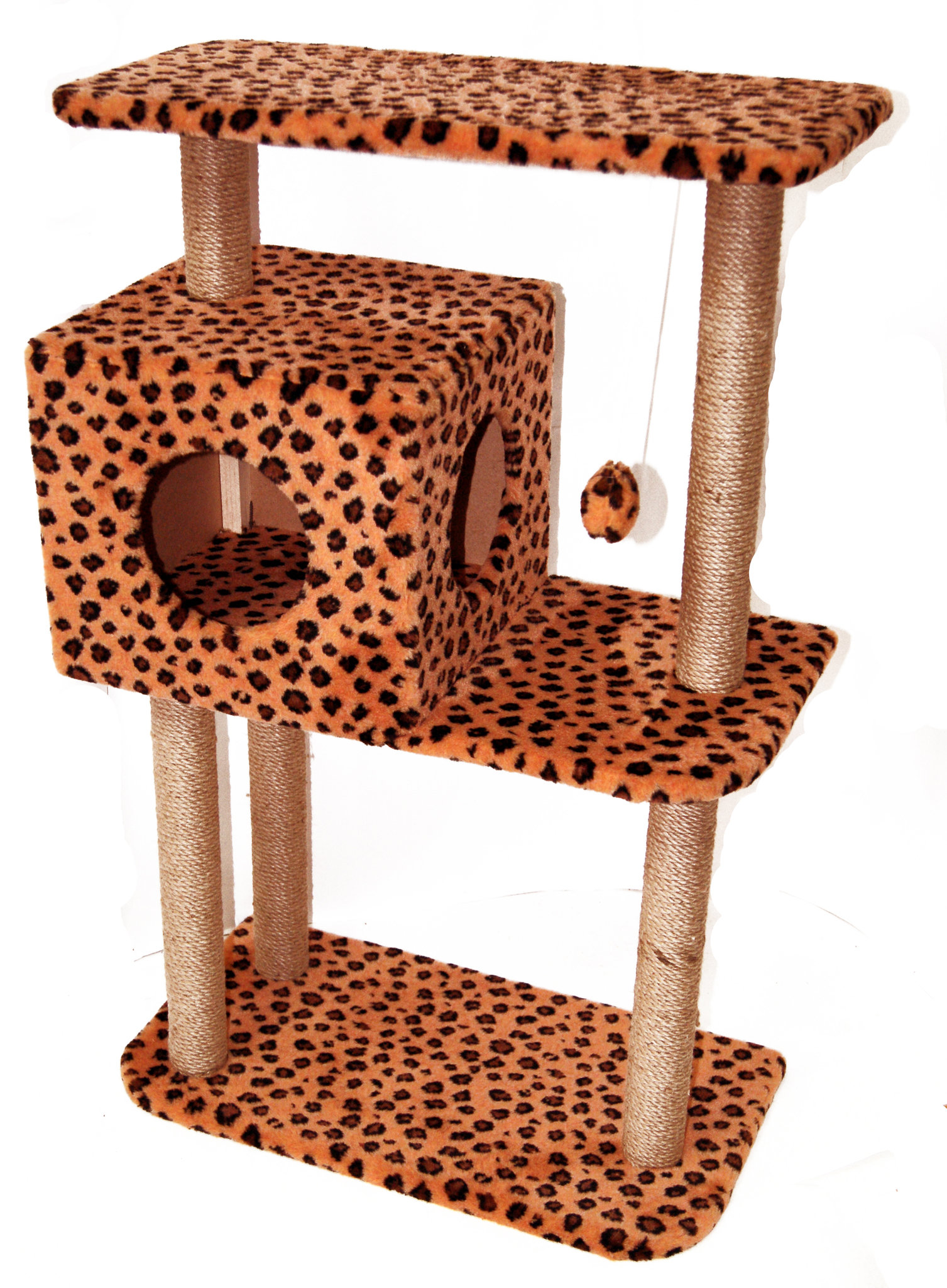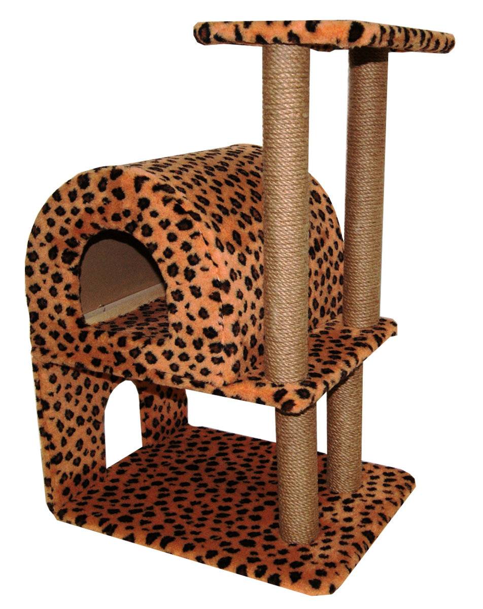 Если кошка уличная, для нее подойдет домик на возвышении с имитированными стволами деревьев (столбики, обвитые веревкой) и ступенями. Домашнюю кошку сложная конструкция тоже заинтересует.