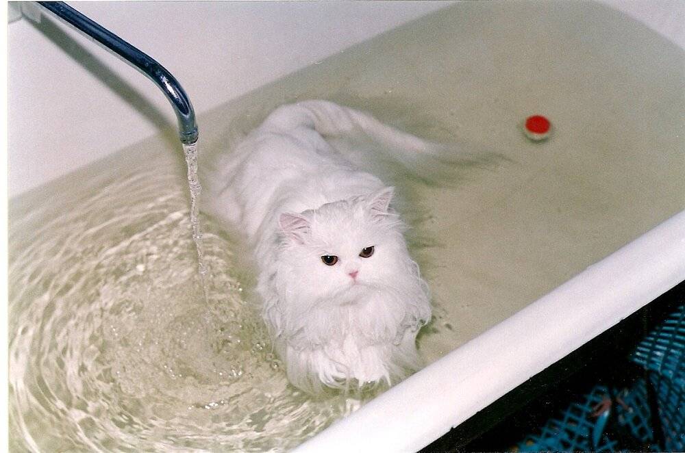 Частое принудительное купание неполезно для кошек. Моют их при необходимости, если они сильно испачкались, либо завелись блохи. Стандартный режим – не чаще 1 раза в год. Они и без того маниакально относятся к собственной внешности: беспрестанно вылизывают шерстку после каждого приёма пищи и посещения туалета. Научить взрослую кошку полюбить ванну сложно.