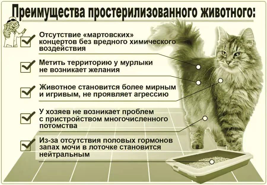 Стерилизация кошек до начала полового созревания может предупредить возникновение рака молочной железы или матки. Способ не особо подходит для ценных репродуктивных питомцев, участвующих в размножении и поддержании породы. Если же кошка или кот не представляет породной ценности, то их лучше кастрировать.
