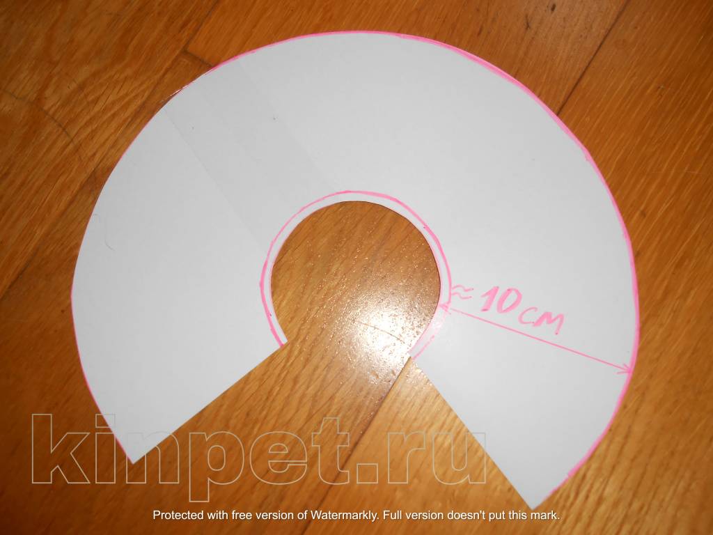 Шаг 5. Примерьте воротник на животное. Если тесновато – уберите немного от внутреннего радиуса. Не начинайте с больших цифр – зачастую достаточно отступить от края на 0,5 см.