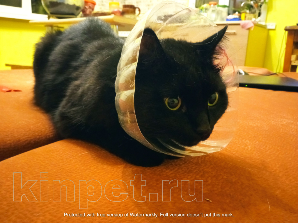 При покупке в ветеринарной аптеке или зоомагазине возникает вопрос, сколько стоит «елизаветинский» воротник для кошки. Цена может удивить, особенно на изделия импортные, от именитых брендов. Так как конструкция чаще всего используется временно, короткий период, практичнее сделать ее из подручных материалов, например, из пластиковой бутылки. Дополнительно понадобиться липучка, ленточки.