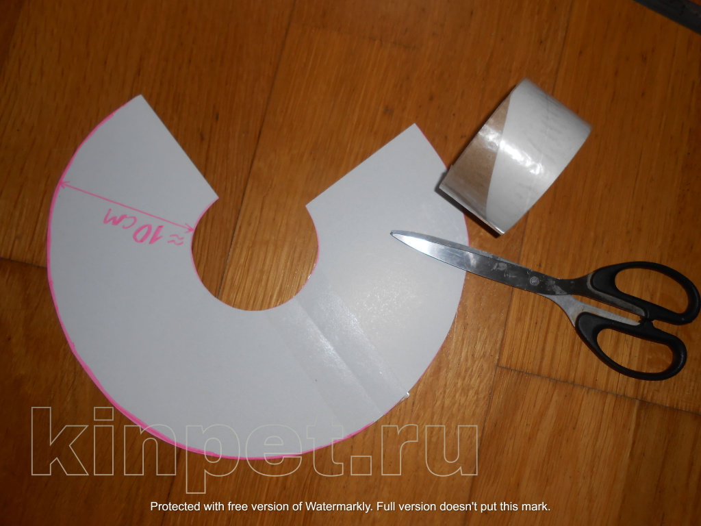 Шаг 4. Соедините срез скотчем. У вас должно получиться ¾ круга – то есть полноценный воротник.