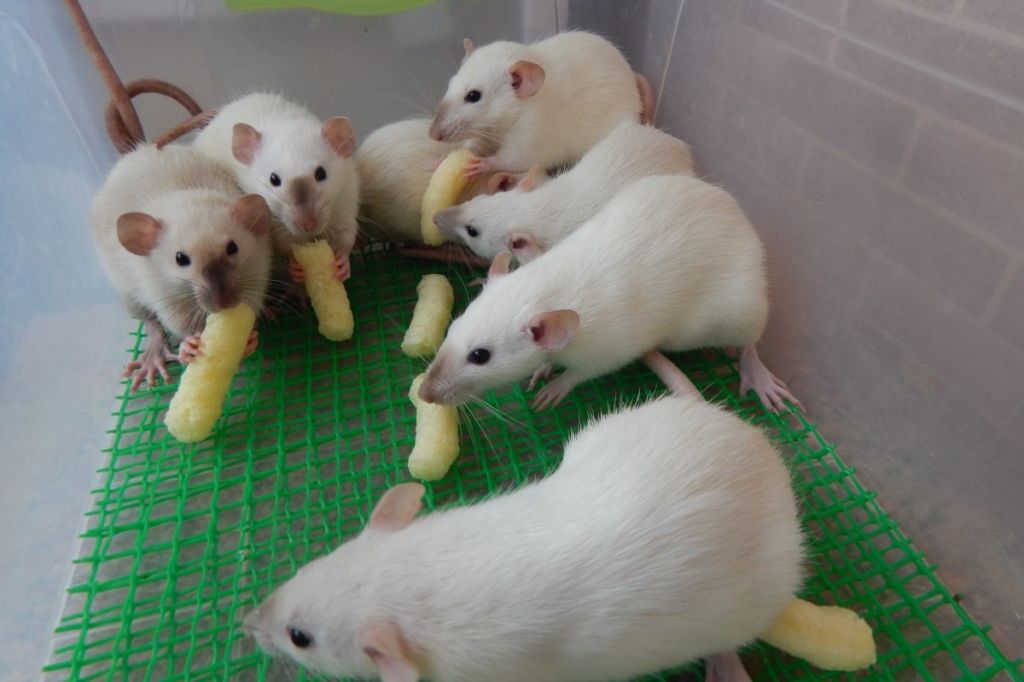 Если в клетке проживает две Дамбо-крысы — приобретите длинную миску с креплениями за прутья, или разместите по центру клетки большую тарелку. Это позволит питомцам свободно трапезничать, не мешая друг другу.