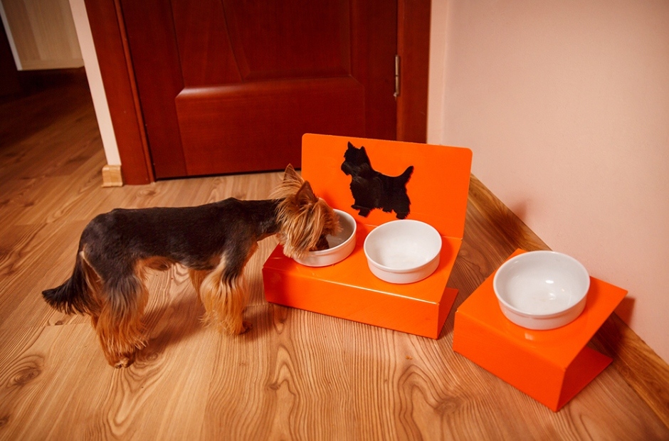 Важно! Миску нужно убрать в какое-то недоступное место после кормления, даже если йорк не доел свою порцию. Это научит его кушать сразу всё и не растягивать процесс приема пищи на полдня.